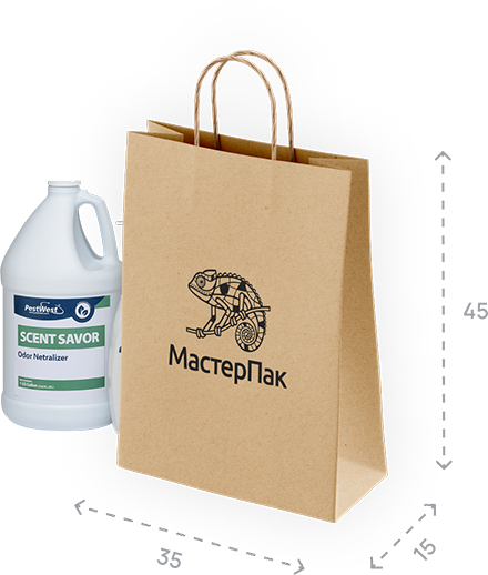 - Крученые ручки, бумажный пакет 35*20*34,5 см (ш*г*в), крафт бурый 90 гр.